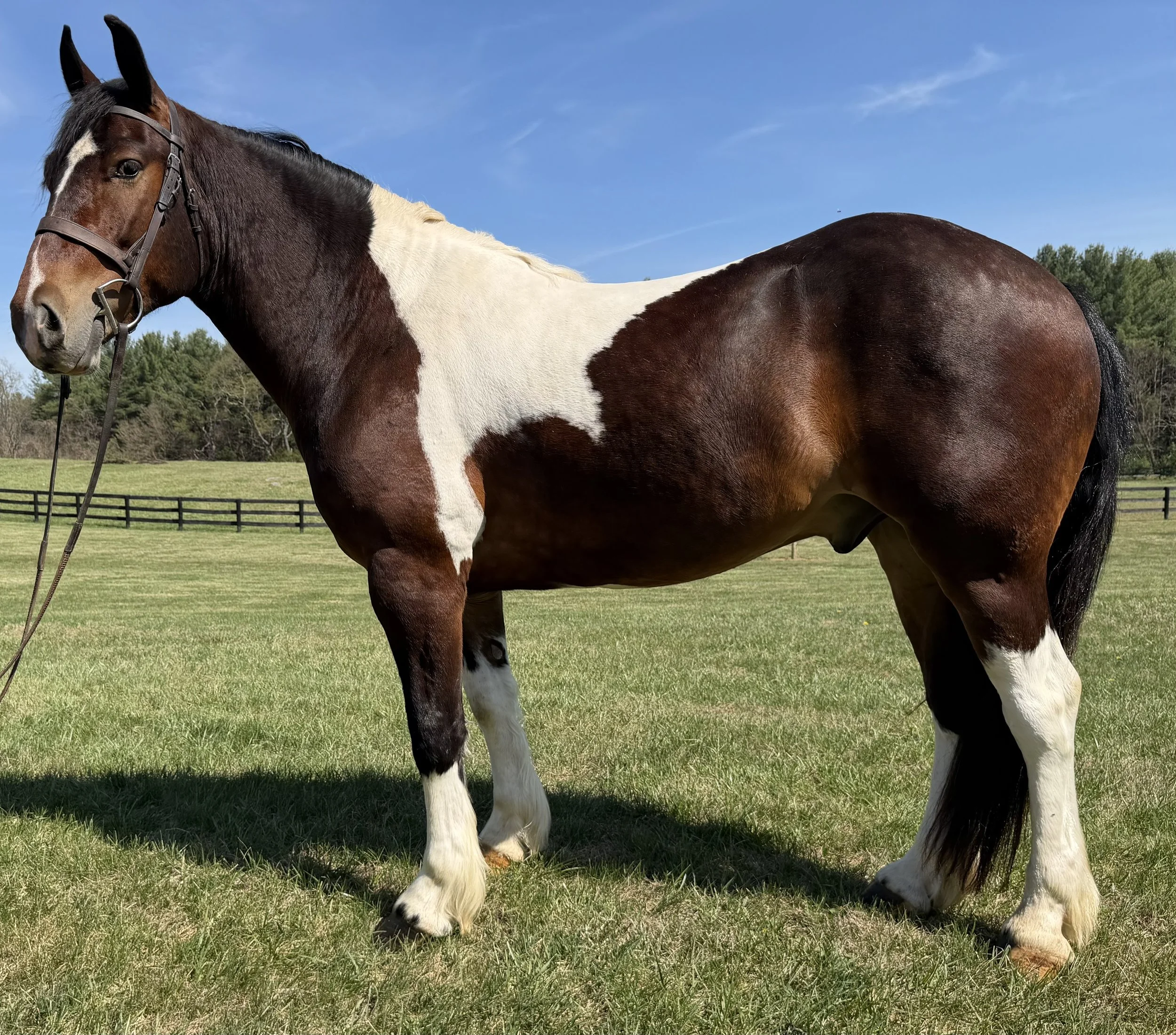 Mason has a well-rounded and ๐ข๐ฆ๐ฉ๐ซ๐๐ฌ๐ฌ๐ข๐ฏ๐ ๐ซ๐๐ฌ๐ฎ๐ฆ๐. He has hunted in the ๐ ๐ข๐ซ๐ฌ๐ญ, ๐๐๐๐จ๐ง๐, ๐๐ง๐ ๐๐ข๐ฅ๐ฅ๐ญ๐จ๐ฉ๐ฉ๐ข๐ง๐ ๐๐ข๐๐ฅ๐๐ฌ ๐ฐ๐ข๐ญ๐ก ๐๐จ๐ฎ๐ซ ๐ซ๐๐๐จ๐ ๐ง๐ข๐ณ๐๐ ๐ฉ๐๐๐ค๐ฌ, confidently carrying riders of ๐ฏ๐๐ซ๐ฒ๐ข๐ง๐ ๐๐ฑ๐ฉ๐๐ซ๐ข๐๐ง๐๐ ๐ฅ๐๐ฏ๐๐ฅ๐ฌ for consistently enjoyable days in the field. He has also served as a ๐๐๐ฉ๐๐ง๐๐๐๐ฅ๐ ๐ก๐ฎ๐ง๐ญ๐ฌ๐ฆ๐๐งโ๐ฌ ๐ก๐จ๐ซ๐ฌ๐, demonstrating steadiness, stamina, and professionalism. Mason was also a fortunate contestant at Hunt Night during the prestigious ๐๐๐ง๐ง๐ฌ๐ฒ๐ฅ๐ฏ๐๐ง๐ข๐ ๐๐๐ญ๐ข๐จ๐ง๐๐ฅ ๐๐จ๐ซ๐ฌ๐ ๐๐ก๐จ๐ฐ in Harrisburg, where he handled the lively atmosphere with composure. He is equally ๐ข๐ฆ๐ฉ๐ซ๐๐ฌ๐ฌ๐ข๐ฏ๐ ๐ข๐ง ๐ก๐๐ซ๐ง๐๐ฌ๐ฌ, turning heads while driving a single carriage and has been driven double as well. His presence and excellent manners make him stand out wherever he goes.