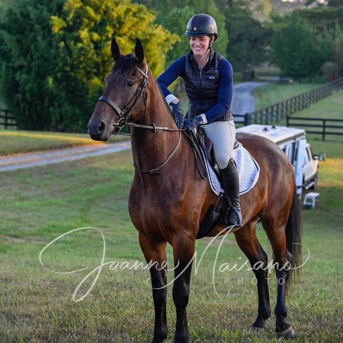 He has had extensive ring and trail training. Cruiser has been out with the fox hunting hounds and has been cross-country schooling, He is steady on trails, comfortable riding alone or with company.