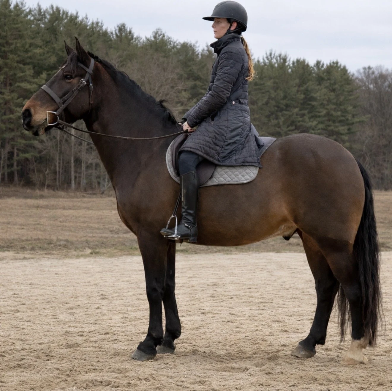 In addition to his experience in the hunt field and in harness, Mason has the talent and movement to ๐ฌ๐ญ๐๐ฉ ๐ฌ๐ญ๐ซ๐๐ข๐ ๐ก๐ญ ๐ข๐ง๐ญ๐จ ๐ญ๐ก๐ ๐ฌ๐ก๐จ๐ฐ ๐ซ๐ข๐ง๐ . He would excel as an eventer, jumper, or hunter, combining athletic ability with a willing, rideable temperament. He is ๐๐ฑ๐ญ๐ซ๐๐ฆ๐๐ฅ๐ฒ ๐๐จ๐ฆ๐๐จ๐ซ๐ญ๐๐๐ฅ๐ to ride, with three smooth, balanced gaitsโa steady walk, trot, and canter. Mason ๐๐จ๐๐ฌ ๐ง๐จ๐ญ ๐ฉ๐ฎ๐ฅ๐ฅ, ๐ซ๐ฎ๐ฌ๐ก, ๐จ๐ซ ๐ญ๐๐ค๐ ๐๐๐ฏ๐๐ง๐ญ๐๐ ๐ ๐จ๐ ๐ก๐ข๐ฌ ๐ซ๐ข๐๐๐ซ; instead, he is respectful, responsive, and enjoys his work. On the ground, Mason is a true gentleman. ๐๐ข๐ฌ ๐ฆ๐๐ง๐ง๐๐ซ๐ฌ ๐๐ซ๐ ๐ข๐ฆ๐ฉ๐๐๐๐๐๐ฅ๐โhe stands quietly, loads and trailers with ease, comes when called, and is excellent for the farrier and clipping.