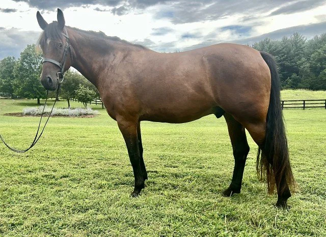Roger is a handsome gelding with an exceptional temperament and a truly versatile skill set. Roger offers three smooth, comfortable gaits and shows natural talent, bravery, and confidence over a wide variety of fences. Roger has extensive trail experience both alone and in company and is currently hunting with Blue Ridge. His kind mind, willingness, and trainable nature make him an excellent match for an amateur in a training program. Well suited for pleasure riding, combined training, or fox hunting, 𝐑𝐨𝐠𝐞𝐫 𝐢𝐬 𝐚 𝐫𝐚𝐫𝐞 𝐚𝐧𝐝 𝐬𝐩𝐞𝐜𝐢𝐚𝐥 𝐂𝐥𝐞𝐯𝐞𝐥𝐚𝐧𝐝 𝐁𝐚𝐲—𝐚𝐧 𝐞𝐱𝐜𝐞𝐩𝐭𝐢𝐨𝐧𝐚𝐥 𝐠𝐞𝐦 𝐢𝐧 𝐞𝐯𝐞𝐫𝐲 𝐬𝐞𝐧𝐬𝐞.
